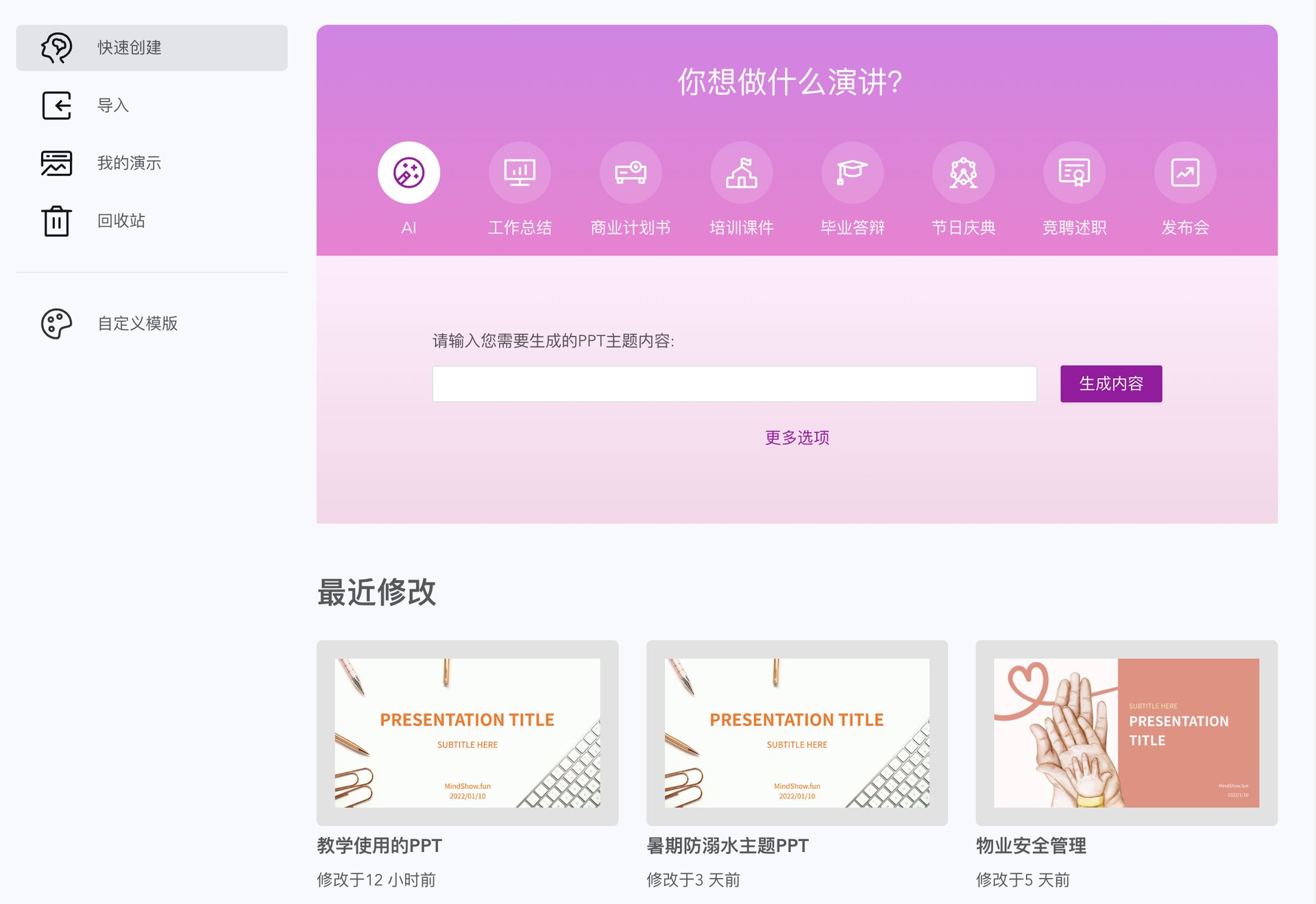 快速提供服务: 借助已有的mindshow功能,无需开发新的PPT生成功能,能够快速提供服务。